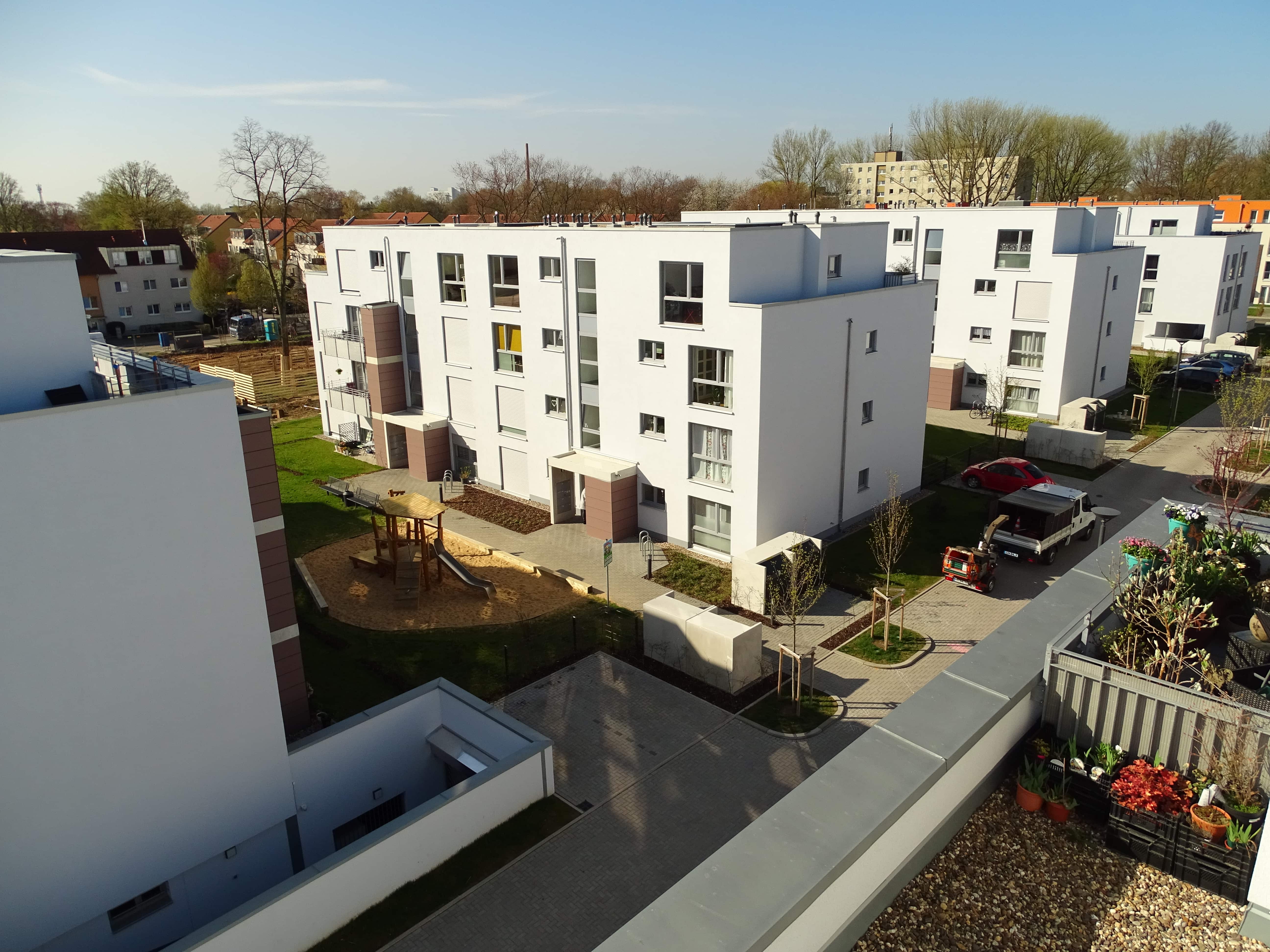 individuell geschnittene Wohnungen (2- bis 4-Zimmer) mit Parkett + Fußbodenheizung, Einsatz von Erdwärme, z. T. barrierefrei
