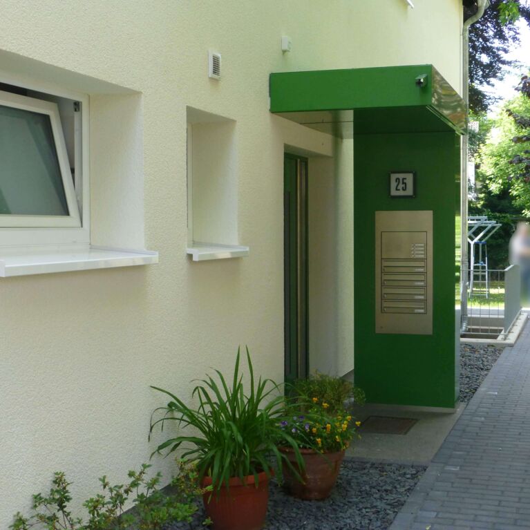 neue Fassade mit Wärmedämmung, Überarbeitung der Balkone und neue Haustüranlage